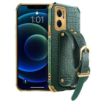 6D Crocodile Xiaomi Redmi 10 5G/Note 11E Case with Hand Strap - Green