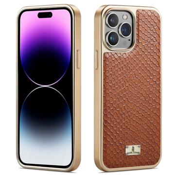FIERRE SHANN For iPhone 14 Pro Max PU Leather Coated TPU Back Case Snake Texture Electroplated Anti-drop Phone Cover