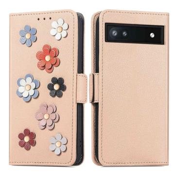 Flower Decor Series Google Pixel 6a Wallet Case - Beige