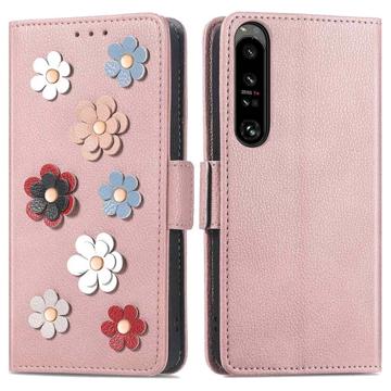 Flower Decor Series Sony Xperia 1 IV Wallet Case - Rose Gold