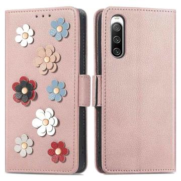 Flower Decor Series Sony Xperia 10 IV Wallet Case - Rose Gold