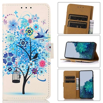 Glam Series Samsung Galaxy S21 FE 5G Wallet Case - Flowering Tree / Blue
