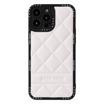 Good Luck Rhombic Grid iPhone 14 Pro Hybrid Case - White