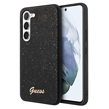 Guess Glitter Flakes Metal Logo Samsung Galaxy S23 5G Hybrid Case - Black