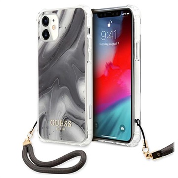 Guess Marble Collection iPhone 12 Mini Case with Hand Strap - Grey