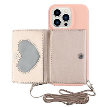 Heart Series iPhone 14 Pro Case with Wallet & Strap - Pink