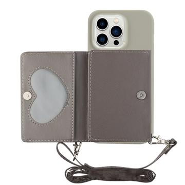 Heart Series iPhone 14 Pro Max Case with Wallet & Strap - Grey