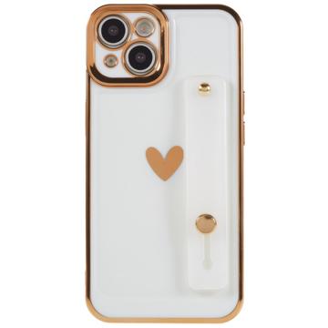 Heart Series iPhone 14 TPU Case with Hand Strap - White