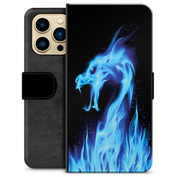 iPhone 13 Pro Max Premium Wallet Case - Blue Fire Dragon
