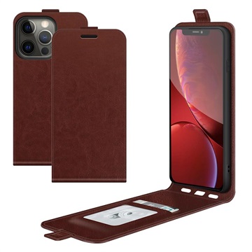 iPhone 13 Pro Vertical Flip Case with Card Holder - Brown