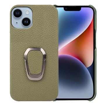 iPhone 14 Leather Coated Case with Ring Holder - Dark Green
