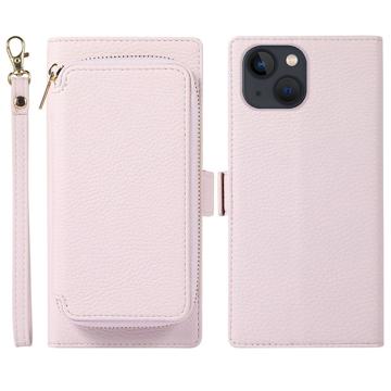 iPhone 14 Plus 2-in-1 Magnetic Wallet Case with Zipper - Light Purple