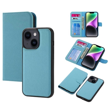 For iPhone 14 Plus Detachable TPU Back Case Cross Texture Wallet Stand PU Leather Shockproof Cover