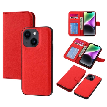 For iPhone 14 Plus Detachable TPU Back Case Cross Texture Wallet Stand PU Leather Shockproof Cover
