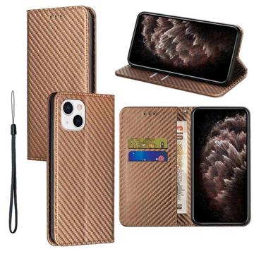 iPhone 14 Plus Wallet Case - Carbon Fiber - Brown