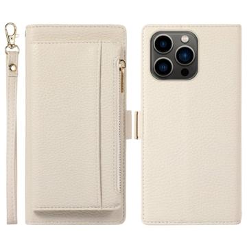 iPhone 14 Pro Max 2-in-1 Magnetic Wallet Case with Zipper - White