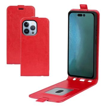iPhone 14 Pro Max Vertical Flip Case with Card Holder - Red