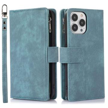 iPhone 14 Pro Max Wallet Case with Wrist & Shoulder Strap - Baby Blue