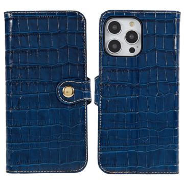 iPhone 14 Pro Max Wallet Leather Case - Crocodile - Blue