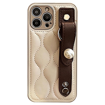 Wristband Design Hybrid Case with Faux Pearl for iPhone 14 Pro Max Change up everyday outlook and protect your precious iPhone 14 Pro Max with this unusual, unique, and beautiful hybrid case! Its rhombus design features a wristband with faux pearl on the back, which makes carrying and holding your iPhone 14 Pro Max much easier, also giving it a conspicuous appearance!