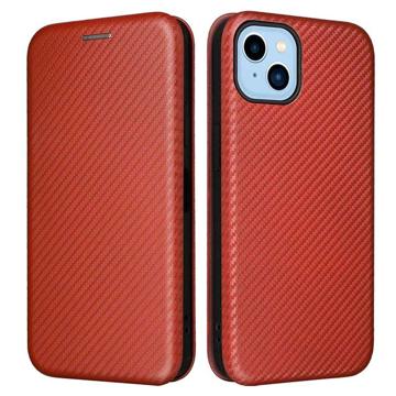 iPhone 14 Wallet Case - Carbon Fiber - Brown