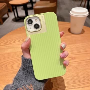 iPhone 15 Case Stripes Design Liquid Silicone Cover with Aluminium Alloy Lens Protector - MagSafe Compatible - Green
