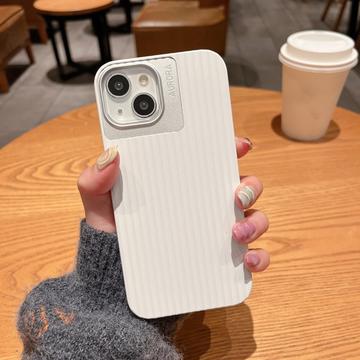 iPhone 15 Plus Case Stripes Design Silicone Cover with Lens Protector - MagSafe Compatible - White