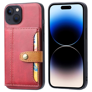 iPhone 15 Plus Retro Style Case with Wallet - Red
