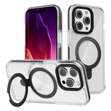iPhone 15 Pro TPU+Acrylic Transparent Phone Case Metal Ring Kickstand Cover Compatible with MagSafe - Black