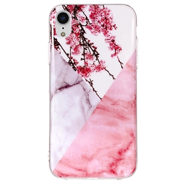 iPhone XR Marble Pattern IMD TPU Case - Pink Flowers