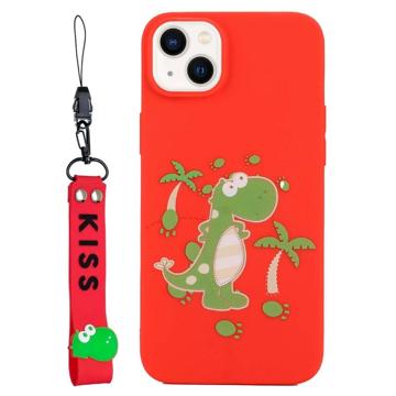 Kiss Series iPhone 14 Plus TPU Case with Strap - Dinosaur