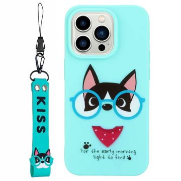Anti-Fall Phone Case for iPhone 14 Pro Max Protective Slim Cover with Silicone Strap Pattern Printed Shockproof Case