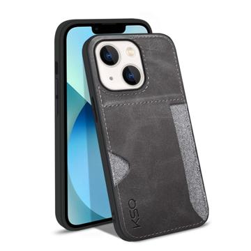 KSQ Style-D For iPhone 14 Plus PU Leather Coated TPU+Cloth Shockproof Cover Card Holder Phone Protective Case