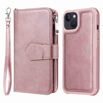 KT Multi-functional Series-4 Zipper Pocket Phone Case for iPhone 14, Detachable 2-in-1 PU Leather Wallet Stand Cover