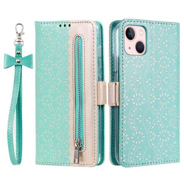 Lace Pattern Wallet Case for iPhone 14 This incredibly stylish wallet case with lace pattern protects your iPhone 14 from damage, and front zipper pocket lets you store paper money and coins.