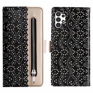 Lace Pattern Samsung Galaxy A13 Wallet Case - Black