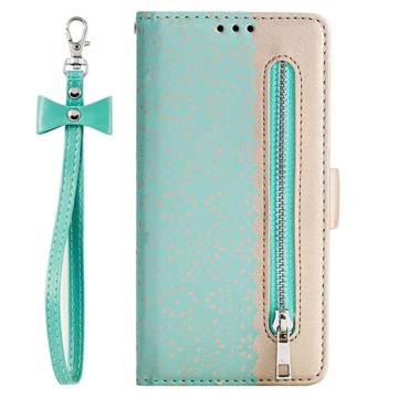 Lace Pattern Samsung Galaxy A21s Wallet Case with Stand Feature - Green
