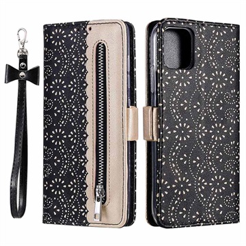 Lace Pattern Samsung Galaxy A22 5G, Galaxy F42 5G Wallet Case - Black