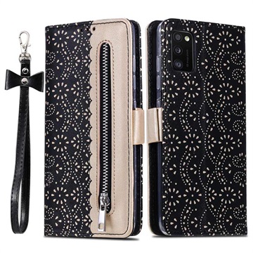 Lace Pattern Samsung Galaxy A41 Wallet Case - Black