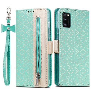 Lace Pattern Samsung Galaxy A41 Wallet Case - Green