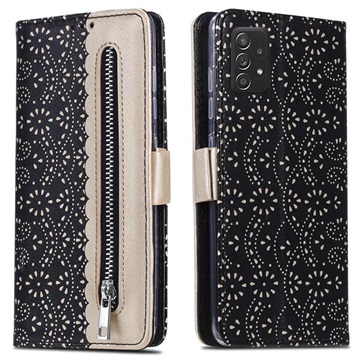 Lace Pattern Samsung Galaxy A52 5G, Galaxy A52s Wallet Case - Black