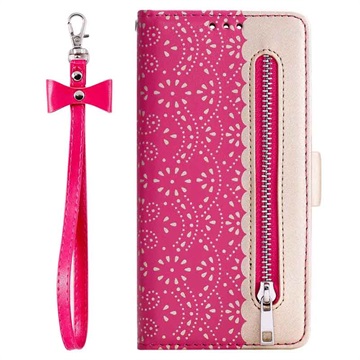 Lace Pattern Samsung Galaxy S20 Wallet Case with Stand Feature - Hot Pink