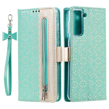 Lace Pattern Samsung Galaxy S21 FE 5G Wallet Case - Green