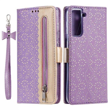 Lace Pattern Wallet Case with Stand Feature for Samsung Galaxy S21 FE 5G Thanks to its unique lace design, this wallet case will make your Samsung Galaxy S21 FE 5G very stylish and suitable for any occasion.