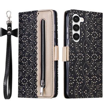 Lace Pattern Wallet Case for Samsung Galaxy S23 Plus 5G (Galaxy S23+ 5G) This incredibly stylish wallet case with lace pattern protects your Samsung Galaxy S23 Plus 5G from damage, and front zipper pocket lets you store paper money and coins.