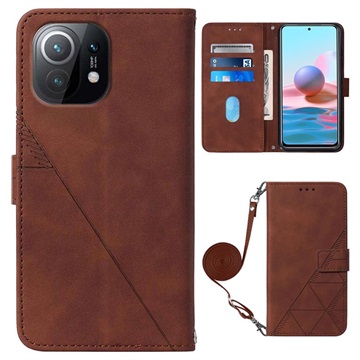 Line Series Xiaomi Mi 11 Wallet Case - Brown