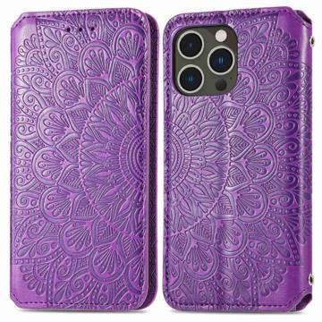 For iPhone 14 Pro Mandala Imprint Pattern PU Leather Anti-drop Case Magnetic Adsorption Phone Stand Wallet Cover