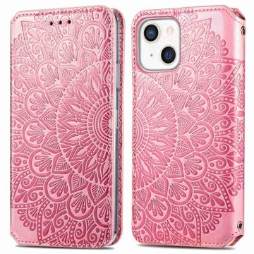 For iPhone 14 Mandala Flower Imprinted PU Leather Full-protection Phone Case Magnetic Auto-closing Stand Wallet Cover