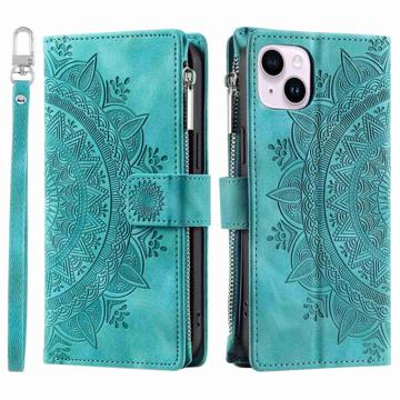 Mandala Zipper iPhone 14 Plus Wallet Case - Green