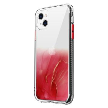 Marble Pattern iPhone 14 Plus Hybrid Case - Red